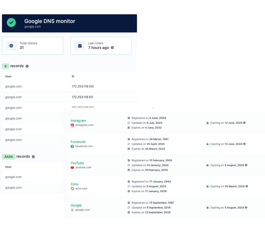 Avoid DNS hijacking and get notified when your domain DNS records change.
