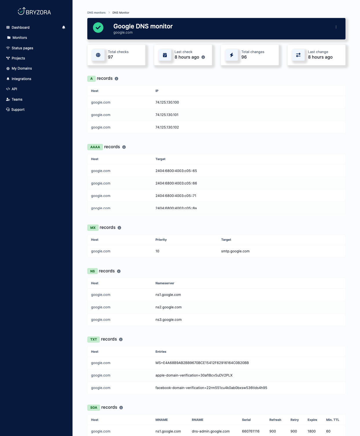 - Track A,MX,NS,TXT,SOA Records , start for free.